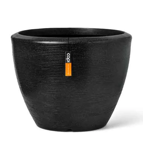 Verfraai je tuin of interieur met de Capi Europe bloempot Granite zwart D 34 H 25 cm. Deze elegante plantenbak uit de Arc Granite collectie combineert een luxueuze uitstraling met praktisch gebruiksgemak. De zwarte bloempot met een diameter van 34 cm en hoogte van 25 cm is vervaardigd uit hoogwaardig kunststof en heeft een stijlvol reliëf met lijnenpatroon dat geïnspireerd is op hedendaagse architectuur. De stone-look geeft deze plantcontainer een natuurlijke, maar toch moderne uitstraling die in vrijwel elk interieur past.
