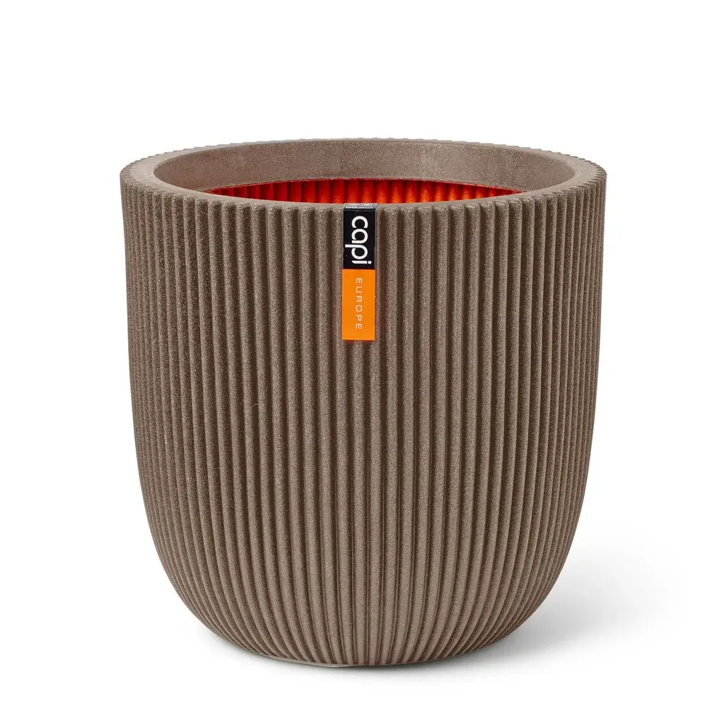 Deze duurzame bloempot uit de Capi Nature Groove NL collectie is CO2 neutraal geproduceerd en gemaakt met gerecyclede materialen. De oranje binnenkant van de pot is een knipoog naar de Nederlandse productie en tevens een isolatielaag die de potten beschermt tegen vorst in de winter en hitte in de zomer. Deze extra laag zorgt ook voor meer stevigheid, waardoor deze pot breukbestendig is. De pot is geschikt voor indoor en outdoor gebruik en beschikt over een levenslange garantie.