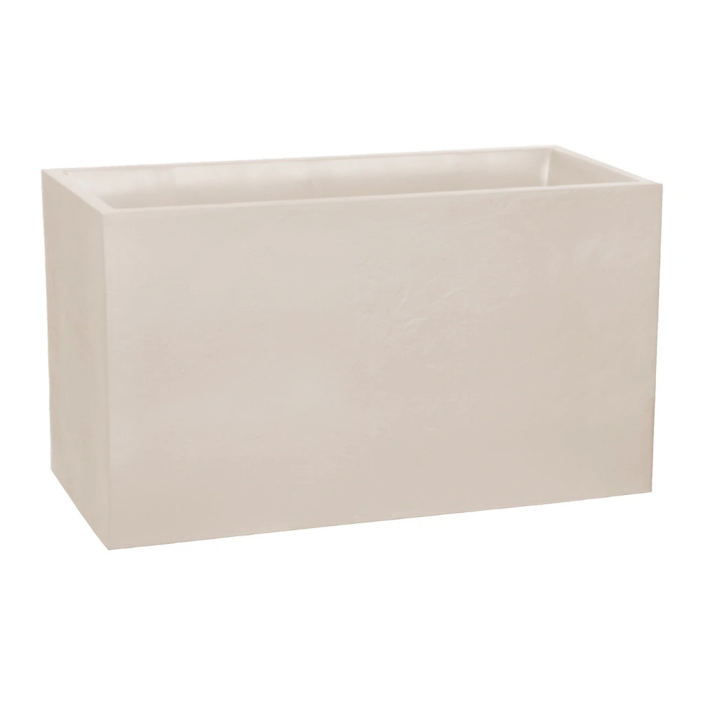 Met de Pot Volcania Rechthoek Beige Limestone 99,5 x 39,5 x 60 cm geef je jouw terras, balkon of interieur een moderne en natuurlijke uitstraling. Deze hoge rechthoekige plantenbak heeft een steenlook in de kleur beige limestone en is ideaal voor het creëren van een groene afscheiding of het plaatsen van grotere planten en siergrassen. Met een royale inhoud van 116 liter biedt hij voldoende ruimte voor optimale wortelgroei. De pot is gemaakt van stevig polypropyleen, is vorst- en UV-bestendig en geschikt voor gebruik binnen en buiten. Dankzij de geïntegreerde waterretentiezone blijft vocht langer behouden en pas je de drainage eenvoudig aan op jouw gebruik.