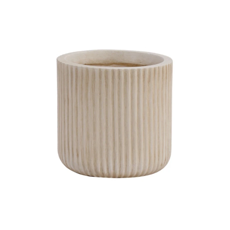 De Pot Stripes Cilinder Fibre Clay D 24 x H 24 cm in beige biedt de perfecte balans tussen speelsheid en verfijning. Het subtiele ribbelontwerp in combinatie met de zachte beige kleur zorgt voor een rustgevende uitstraling die je tuin of balkon onmiddellijk opfleurt. Dankzij de cilindervorm komt de pot op een verfijnde manier tot zijn recht, of je nu kiest voor kruiden, bloemen of kleinere sierplanten.