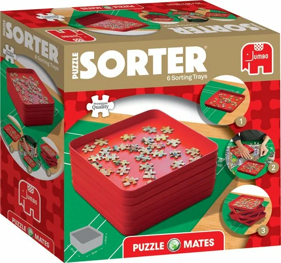 De Puzzle Sorter is het ideale puzzelaccessoire voor het leggen van je favoriete puzzel. De unieke speciaal ontwikkelde puzzelbakken van 20 x 20 cm zijn ideaal voor het bewaren van verschillende puzzelstukjes. Zo kun je ze sorteren op vorm en kleur. De zes stevige kunststof bakken passen op elkaar en kunnen naast elkaar bij je puzzel staan.