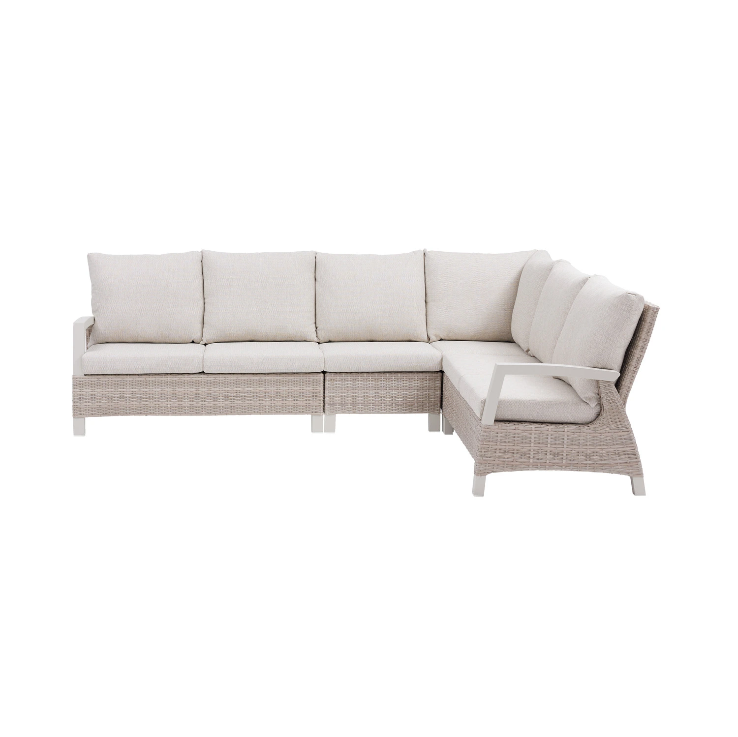 Deze hoeklounge is vervaardigd uit wicker en heeft een stevig aluminium frame. Dit zorgt niet alleen voor een luxe uitstraling, maar ook voor een lange levensduur. Wicker is gekozen vanwege zijn robuustheid en onderhoudsvriendelijkheid, waardoor je jarenlang kunt genieten van dit prachtige meubelstuk zonder veel inspanning.