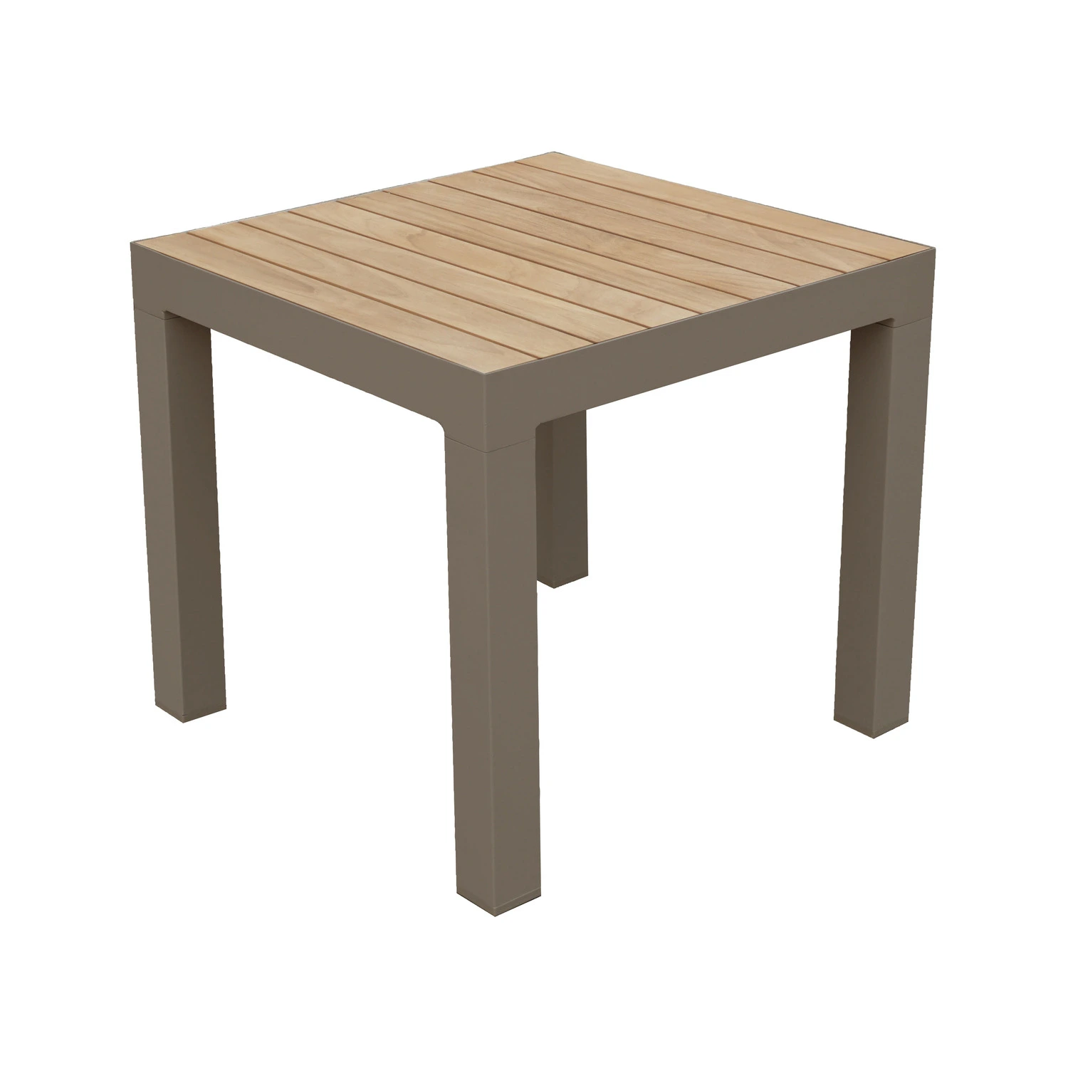Het aluminium frame is licht, sterk en volledig bestand tegen allerlei weersomstandigheden. Dankzij de espresso-kleur krijgt de tafel een chique, eigentijdse uitstraling. Het teakhouten blad voegt een natuurlijke warmte toe, waardoor de tafel perfect in balans is tussen modern en verfijnd. De mooie houtnerf zorgt voor karakter en geeft elke tafel een unieke touch.