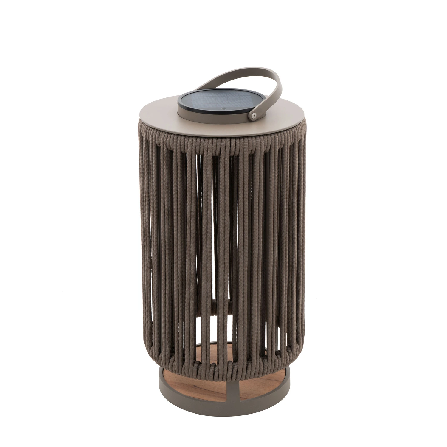 De lamp is gemaakt van duurzaam aluminium en prachtig afgewerkt met stevig, hoogwaardig rope in een diepe espresso-kleur. Dankzij het open gevlochten ontwerp ontstaat er ’s avonds een speels patroon van licht en schaduw. Het geïntegreerde solarsysteem zorgt ervoor dat de lamp volledig werkt op zonne-energie: geen kabels, geen stopcontacten, geen gedoe. Overdag laadt het solarpaneel zichzelf op, en zodra het donker wordt, schakelt de lamp automatisch in. Dat maakt dit model niet alleen mooi, maar ook bijzonder gebruiksvriendelijk en energiezuinig.