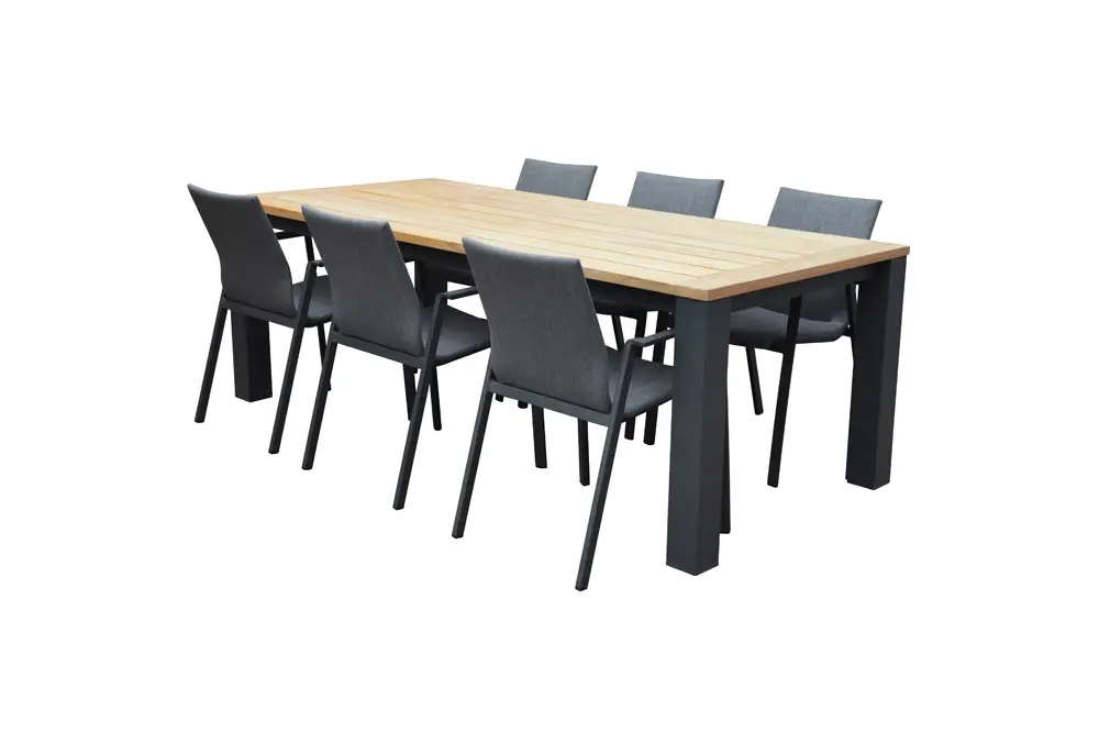 Wil jij optimaal van je tuin genieten? Dan is de Madeira tafel wellicht iets voor jou! Met een totale afmeting van 220 x 100 x 76 cm biedt deze tafel zitplek voor tenminste zes personen. Het frame is gemaakt van aluminium en het tafelblad is gemaakt van teak hardhout.