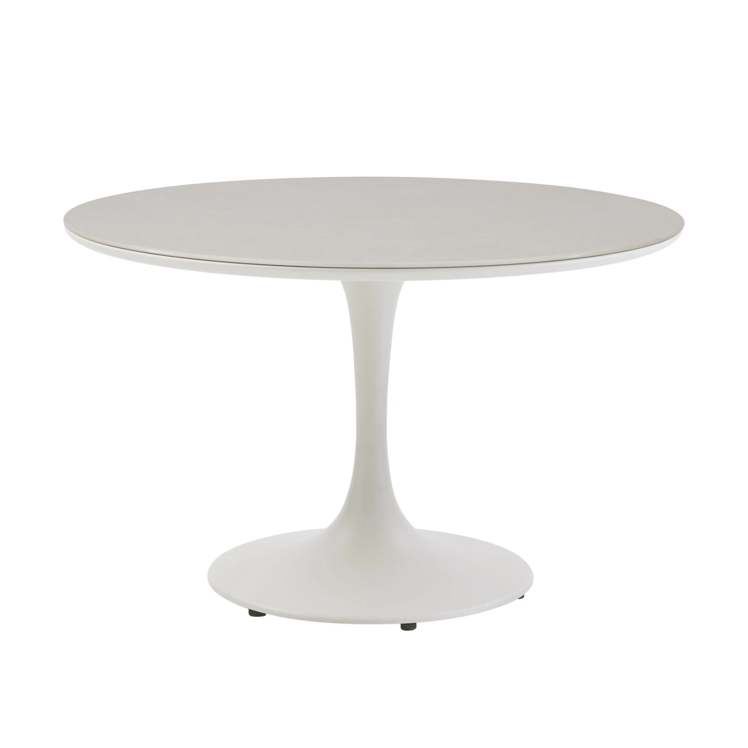 Binnen deze opstelling is de Jura dining tafel het centrale punt voor diners en gezellige buitenmomenten. Met een zandkleurig aluminium frame en een sintered stone tafelblad in grijs krijgt dit onderdeel een uitstraling die goed past bij intensief gebruik in tuin of op terras. Daarnaast heeft het meubel afmetingen van D 120 x H 74 cm.