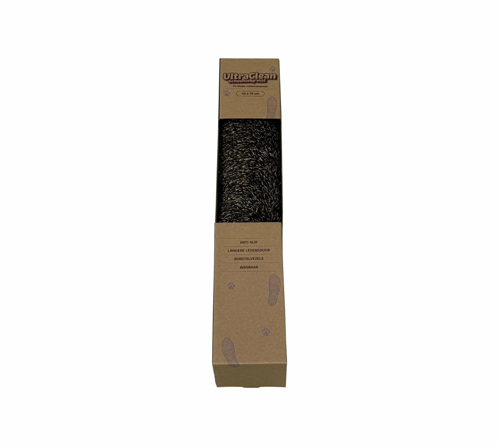 Schoonloopmat Bruin 45 x 70 cm is een handige mat voor binnen, direct achter de deur. Deze mat gebruik je wanneer je naar binnen stapt en je schoenen wilt vegen. De mat is gemaakt van stevige borstelvezels die vuil en vocht van schoenen verwijderen, waardoor je vloer schoon blijft. Het materiaal is geschikt voor intensief gebruik en heeft een langere levensduur. Dankzij het anti-slip oppervlak blijft de mat goed op zijn plek liggen en is veilig in gebruik. Je kunt de mat eenvoudig schoonmaken en wassen, zodat hij altijd fris blijft. Het compacte formaat van 45 x 70 cm past bij de meeste deuren en ingangen.