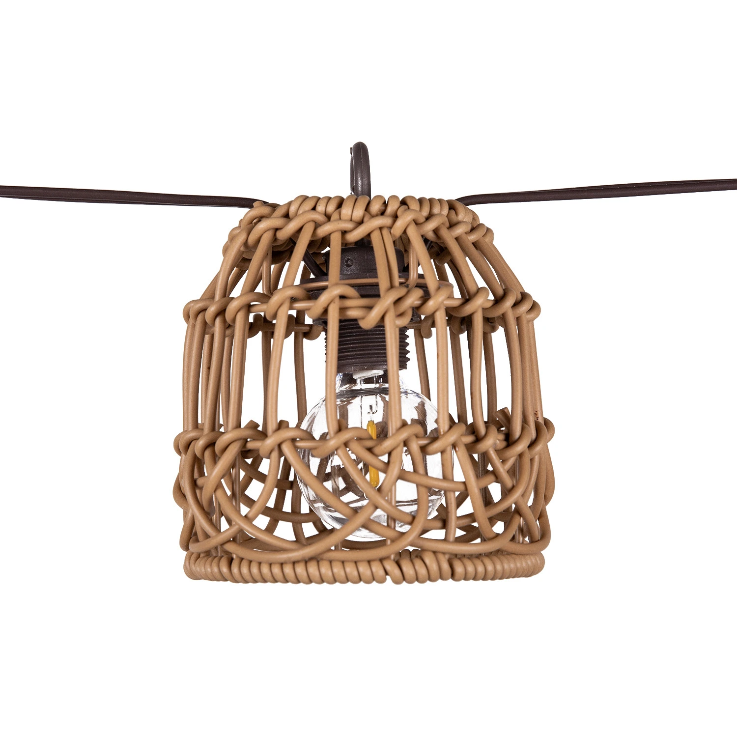 Verlicht je tuin met een natuurlijke charme dankzij het Solar partylight 8L D9H9,4cm PP rattan E12 G40 1,83m lead brown. Dit elegante lichtsnoer bestaat uit 8 stijlvolle lampjes van D 9 x H 9,5 cm, omhuld in bruin PP rattan voor een rustieke en warme uitstraling. De combinatie van natuurlijk design en het zachte licht maakt dit snoer perfect voor elke buitenomgeving – van intieme balkonmomenten tot grote tuinfeesten.