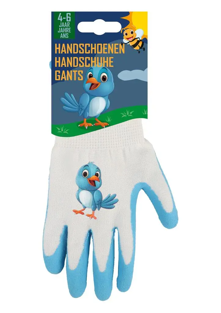 Je kinderen enthousiasmeren om ze mee te laten helpen met je klusjes in de tuin? Laat ze kennismaken met deze vrolijke kinderwerkhandschoenen van Talen Tools. Voorzien van een vogelprint, waardoor ze op een originele manier aan de slag kunnen. De handschoenen geven een goede bescherming tegen oppervlakkige wondjes en houden de werkzaamheden hygiënisch. Dit model is geschikt voor kinderen tussen de 4 en 6 jaar oud. Voor andere klusjes in huis kun je de handschoenen ook gebruiken. Zo verkleinen ze bijvoorbeeld ook de kans op splinters en blaren.