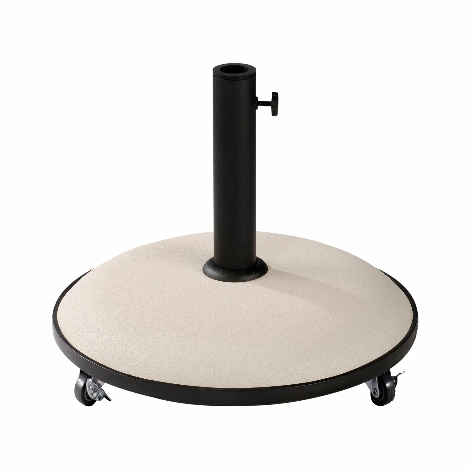 De Royal Seasons® Tirana parasolvoet 25kg cream op wielen rond biedt een stevige en stijlvolle basis voor je parasol. Deze parasolvoet is gemaakt van robuust beton en afgewerkt met aluminium details, waardoor hij zowel duurzaam als elegant is. De ronde, cremewitte voet voegt een moderne uitstraling toe aan je tuin of terras. Dankzij de ingebouwde wielen is deze parasolvoet gemakkelijk te verplaatsen, zodat je schaduw altijd op de juiste plek staat. Met een gewicht van 25 kg is deze parasolvoet ideaal voor kleinere parasols of lichtere modellen.