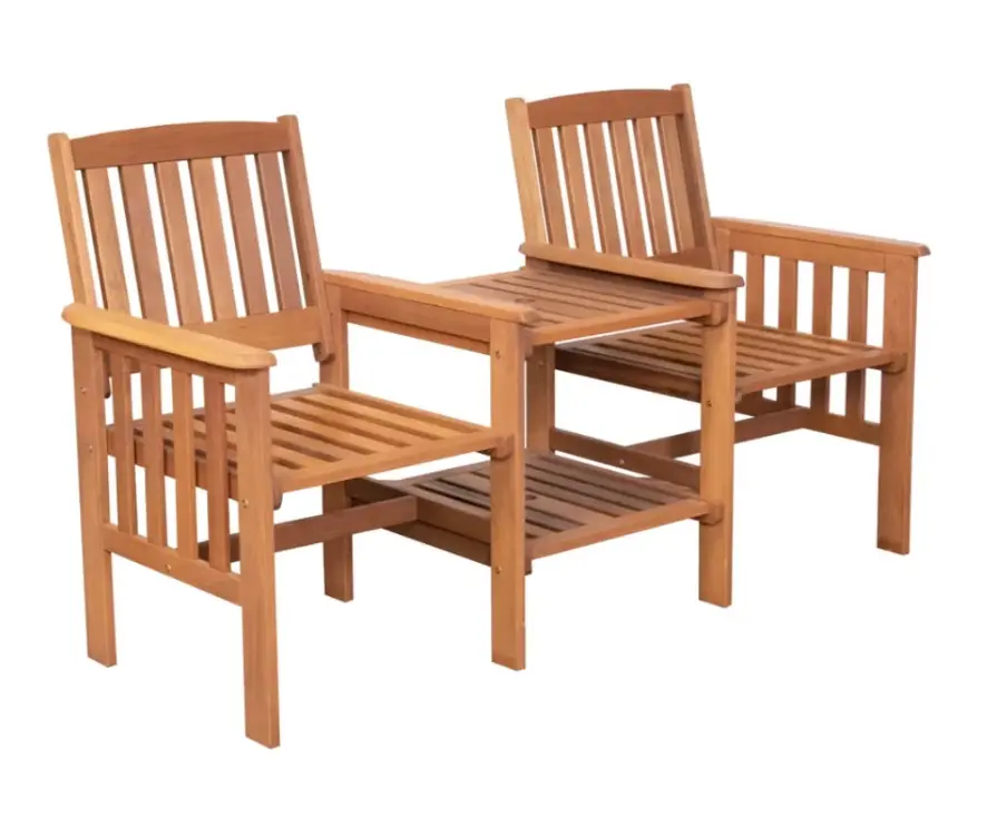 De tuinbank Miami Tête-à-Tête 2-zits is gemaakt van merantihout en heeft een vaste tafel in het midden. Deze bank is handig als je samen buiten wilt zitten en iets wilt drinken of lezen. De afmetingen zijn ongeveer 165 cm breed, 65 cm diep en 90 cm hoog. De zithoogte is 43 cm en de zittingen zijn elk ongeveer 49 bij 47 cm. De tafel in het midden is ongeveer 50 cm breed en 45 cm diep. Je kunt de bank goed gebruiken in de tuin, op het balkon of op het terras. Merantihout is geschikt voor gebruik buiten en lijkt qua eigenschappen op mahonie. Het hout is stevig en geschikt voor tuinmeubels. Als je de bank niet gebruikt, kun je hem het beste afdekken of onder een afdak zetten om hem langer mooi te houden. De bank wordt geleverd in een doos van ongeveer 65 x 60 x 29 cm en is eenvoudig in elkaar te zetten.