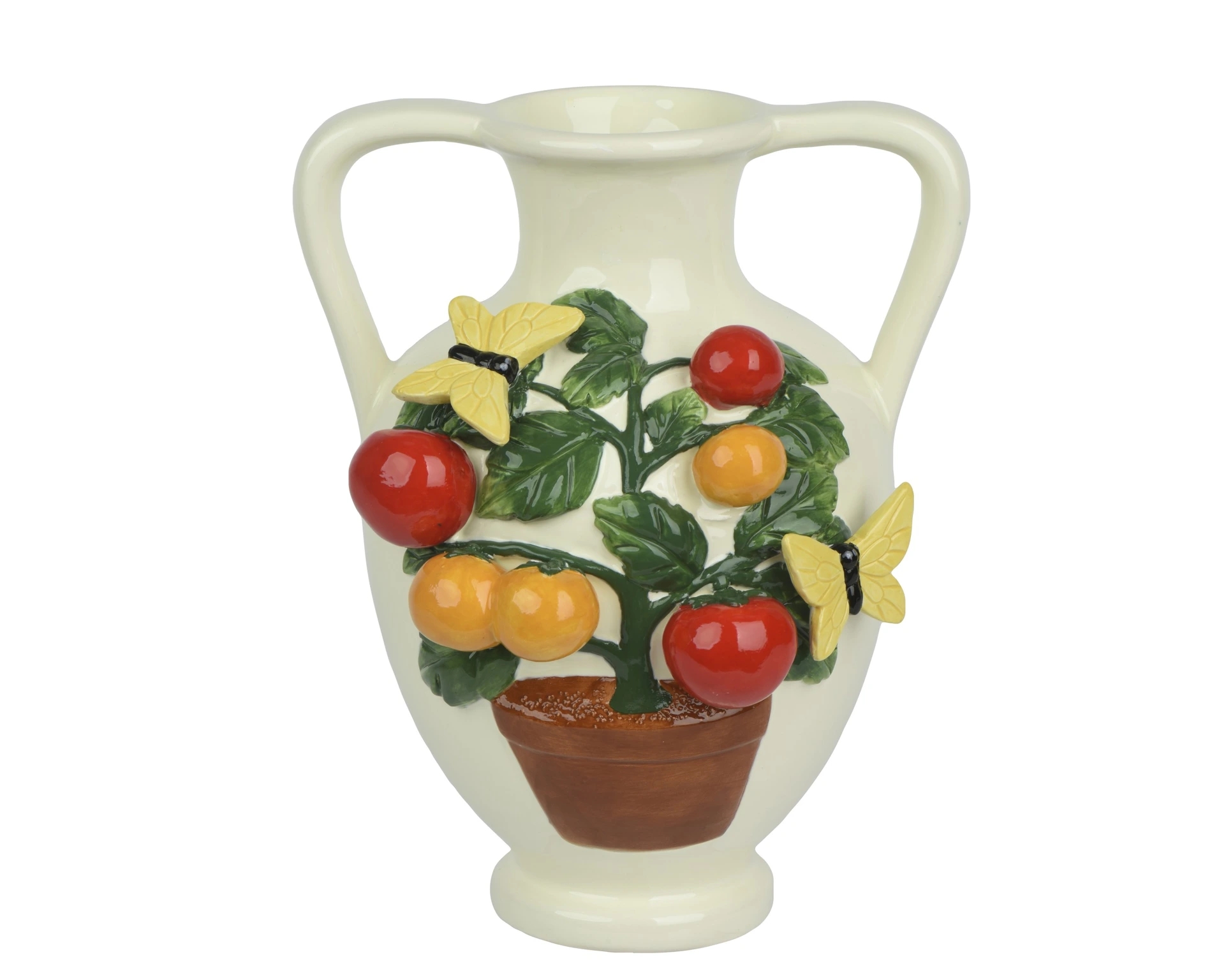 Decoris vaas 26 cm wit met tomatenversiering