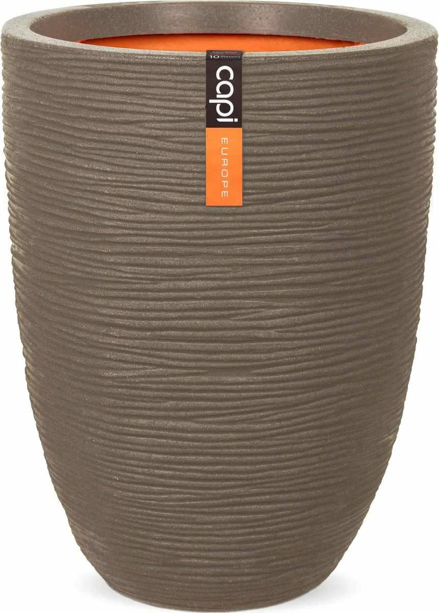Deze duurzame bloempot uit de Capi Nature Rib NL collectie is CO2 neutraal geproduceerd en gemaakt met gerecyclede materialen. De oranje binnenkant van de pot is een knipoog naar de Nederlandse productie en tevens een isolatielaag die de potten beschermt tegen vorst in de winter en hitte in de zomer. Deze extra laag zorgt ook voor meer stevigheid, waardoor deze pot breukbestendig is. De pot is geschikt voor indoor en outdoor gebruik en beschikt over een levenslange garantie.