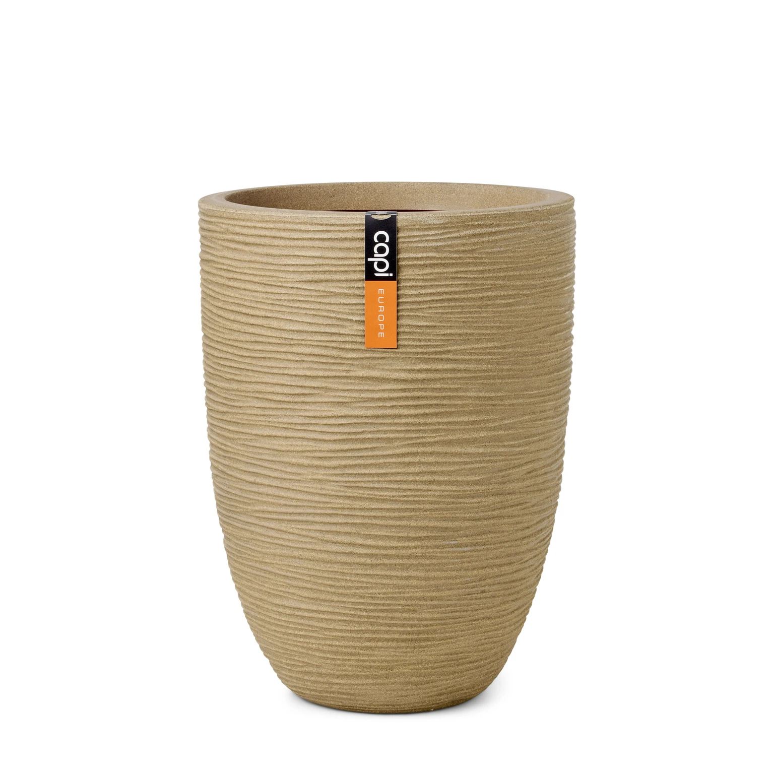 Deze duurzame bloempot uit de Capi Nature Rib NL collectie is CO2 neutraal geproduceerd en gemaakt met gerecyclede materialen. De oranje binnenkant van de pot is een knipoog naar de Nederlandse productie en tevens een isolatielaag die de potten beschermt tegen vorst in de winter en hitte in de zomer. Deze extra laag zorgt ook voor meer stevigheid, waardoor deze pot breukbestendig is. De pot is geschikt voor indoor en outdoor gebruik en beschikt over een levenslange garantie.