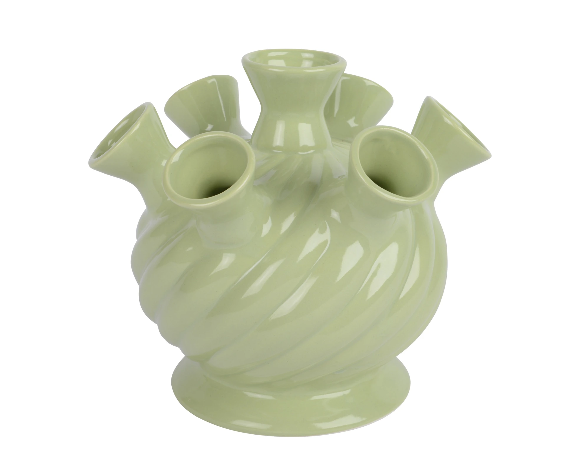 Breng een vleugje natuurlijke frisheid in je home met deze unieke vaas van Decoris. Deze opvallende groene vaas heeft een speels ontwerp met zeven smalle openingen, waardoor je een charmante bloemencompositie kunt creëren. Gemaakt van glanzend porcelein, geeft de afgeronde en gedraaide vorm het een elegante en modern uitstraling die prachtig past in zowel classic als eigentijdse interieurs.
