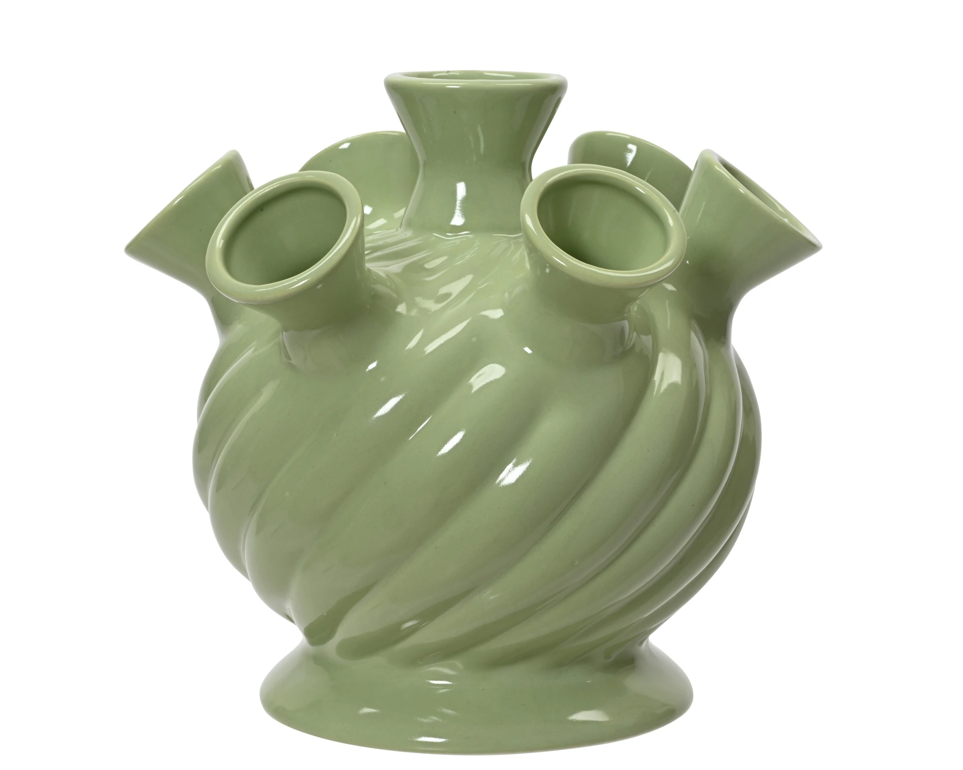 Decoris vaas groen 19,5 cm porcelein met vijf monden