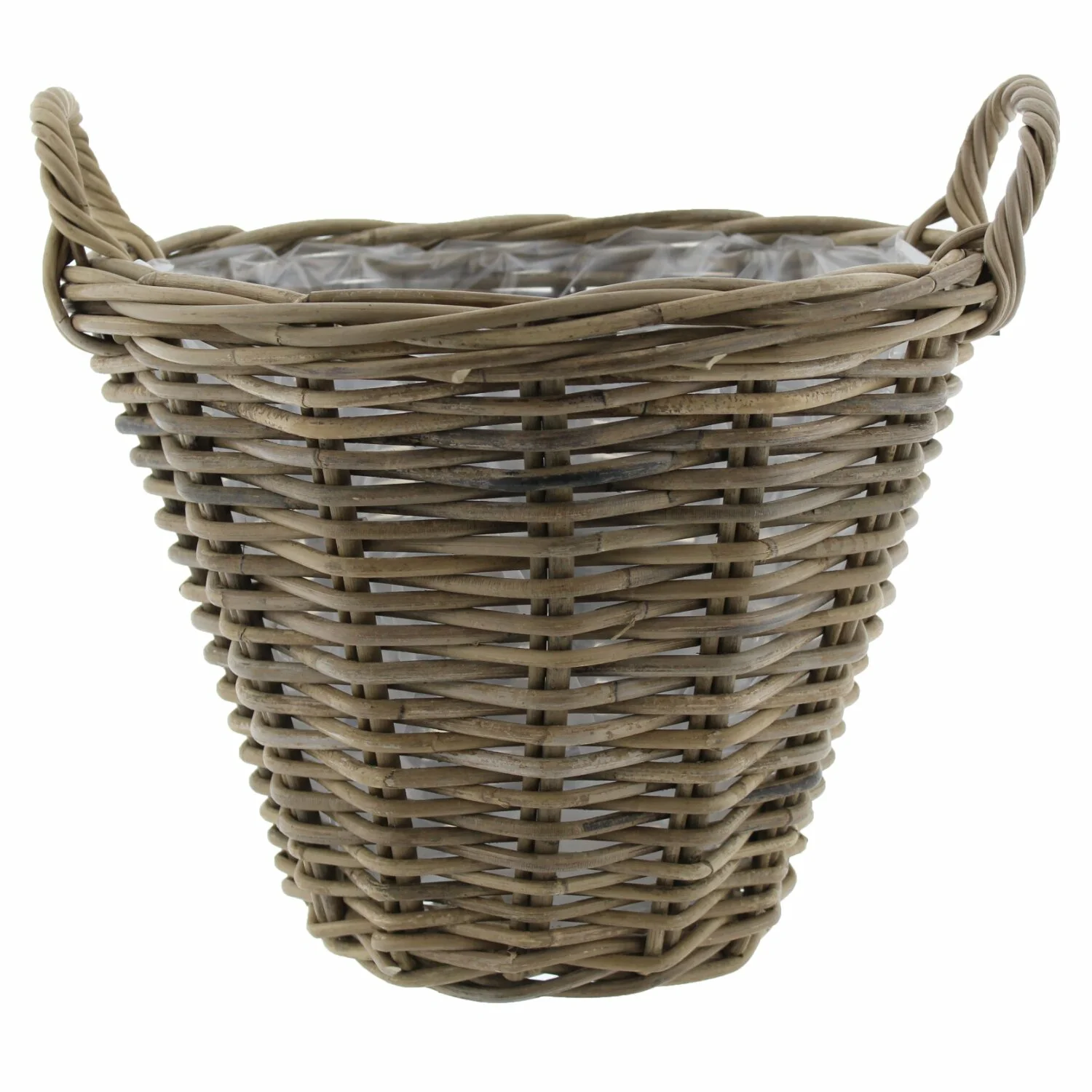 De Van der Leeden aardappelmand D 39 x H 30 cm antiek grijs is een sfeervolle plantenmand die natuurlijke warmte toevoegt aan je interieur of tuin. Deze ronde mand is vakkundig gevlochten van rotan in een prachtige antiek grijze kleur, die zorgt voor een authentieke en rustieke uitstraling. Met een diameter van 39 centimeter en een hoogte van 30 centimeter biedt deze rieten mand voldoende ruimte voor middelgrote planten. Dankzij de plastic binnenvoering is de mand geschikt voor binnen- en buitengebruik, waardoor je talloze decoratieve mogelijkheden hebt.