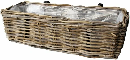 Planten/bloemen balkonmand met haken. Breng sfeer en natuur naar je balkon, tuin of schutting met deze prachtige handgevlochten rotan balkonmand. Met zijn natuurlijke uitstraling en compacte formaat is deze mand perfect om te vullen met bloemen of planten. Ambachtelijk gemaakt in Indonesië, elke mand is uniek. Dankzij de robuuste gevlochten structuur is hij zowel decoratief als functioneel – ideaal voor buitengebruik aan een balkonreling of schutting.