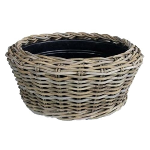 De Van der Leeden terrasmand Drypot grijs D 32 H 14 cm is een handgemaakte plantenmand die natuurlijke schoonheid naar je tuin of interieur brengt. Deze rieten mand is vervaardigd uit hoogwaardig rotan materiaal in een stijlvolle grijze kleur. Met een diameter van 32 centimeter en een hoogte van 14 centimeter biedt deze vierkante terrasmand voldoende ruimte voor diverse planten. De mand is voorzien van een plastic voering, waardoor je hem zowel binnen als buiten kunt gebruiken. Het natuurlijke rotan geeft de plantenmand een warme, organische uitstraling die perfect past bij verschillende inrichtingen.