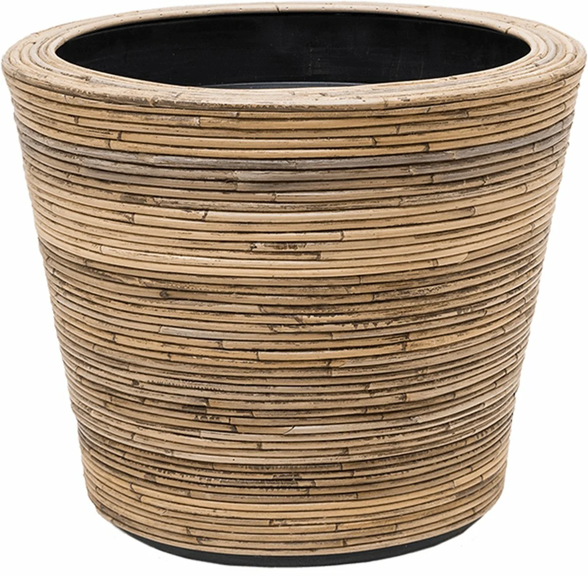 De Van der Leeden Drypot Rotan Streep Grijs met een diameter van 38 cm en een hoogte van 36 cm is een stevige plantenmand met een natuurlijke uitstraling, omwikkeld met rotan. De mand wordt geleverd met een kunststof inzetpot, die voorkomt dat er water of zand lekt en beschermt het rotan tegen contact met de ondergrond. Hierdoor is de mand geschikt voor gebruik zowel binnen als buiten, bijvoorbeeld in de tuin. De mand is handgemaakt en het rotan is bestand tegen verschillende weersomstandigheden, hoewel het na verloop van tijd kan verkleuren door blootstelling aan de elementen. Deze drypot is een mooie toevoeging voor je favoriete kamerplant en past goed op een bijzettafel of in de tuin.